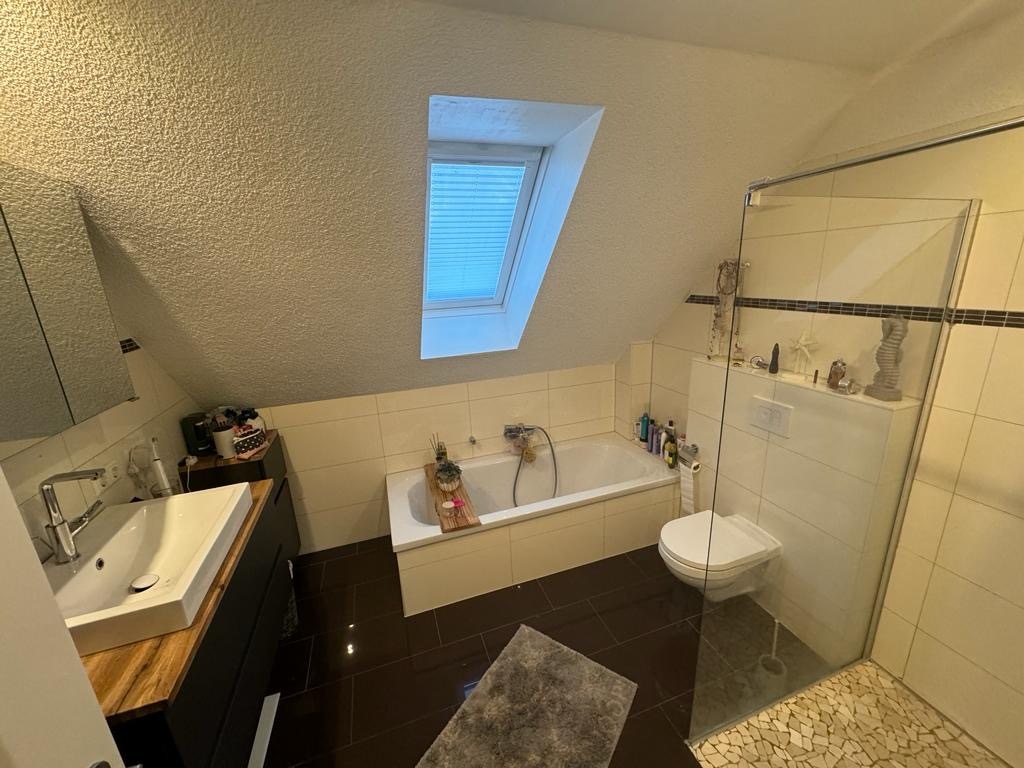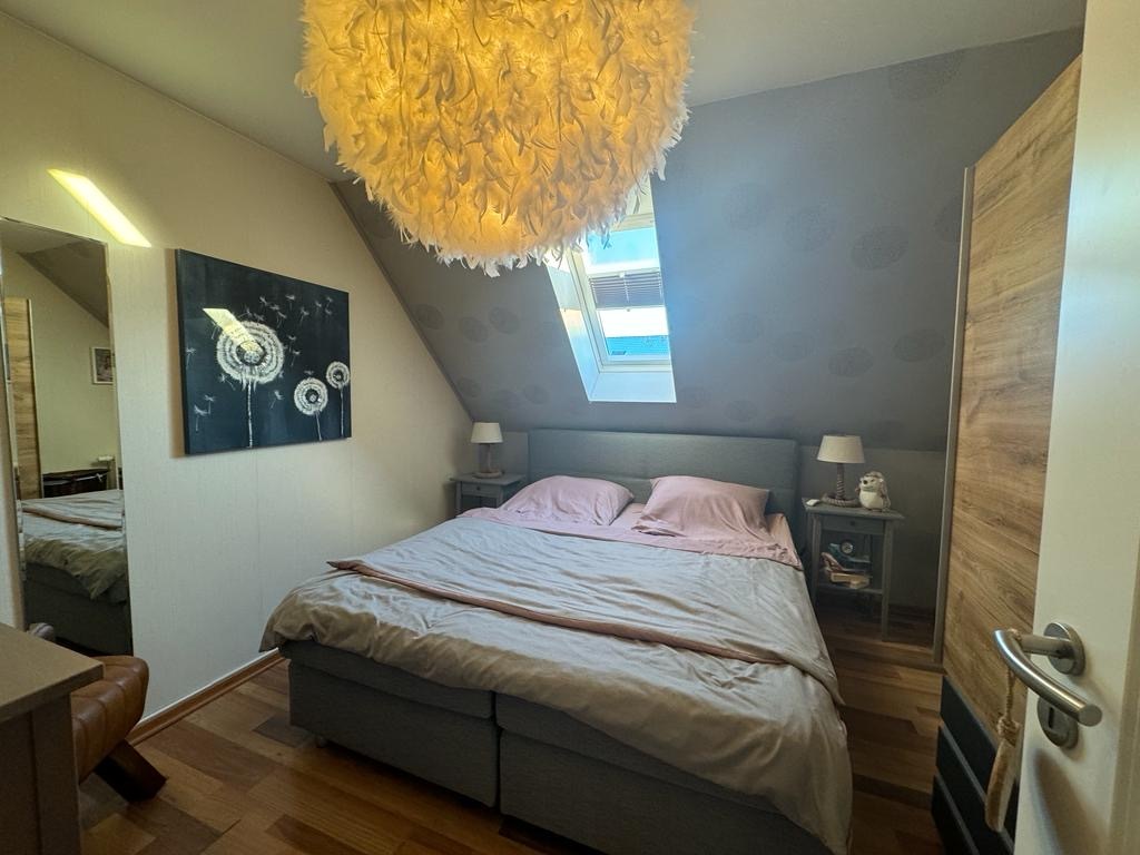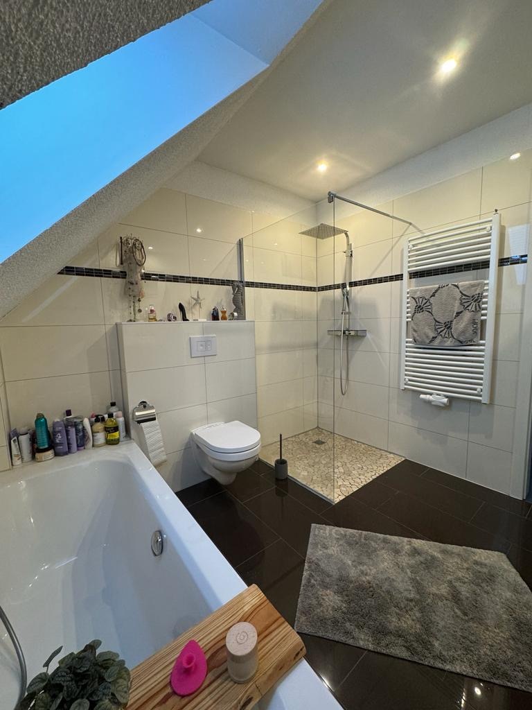 Über die geflieste Treppe erreichen Sie das Obergeschoss mit 3 Schlafzimmern und dem modernen Vollbad mit ebenerdiger Dusche und Badewanne. Durch die geschickte Platzierung der sanitären Einrichtungen ist das Badezimmer ein echtes Platzwunder. Die Dachflächenfenster verleihen den Zimmern einen gemütlichen Charme. Der begehbare Spitzboden bietet reichlich Platz um Dinge abzustellen und zu lagern.